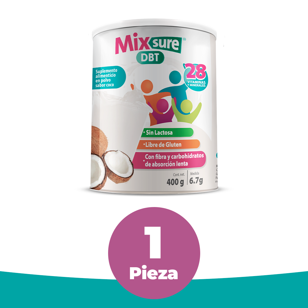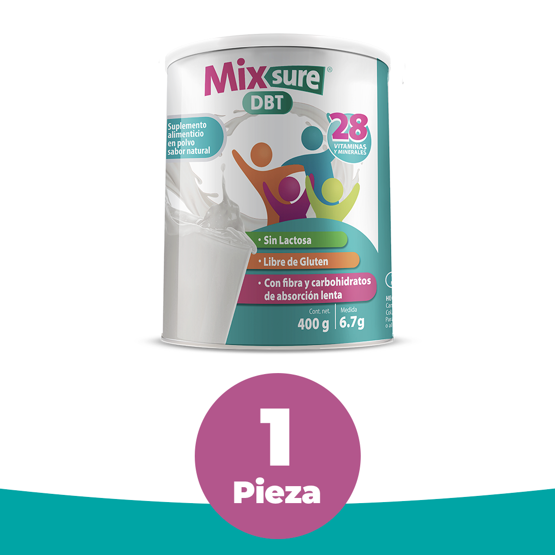 Descripción: Fórmula diseñada con hidratos de carbono de lenta absorción, también contiene fibra dietética y glucósidos de esteviol (edulcorante de origen natural sin calorías). Mixsure DBT es un sumplemento ideal para la alimentación diaria.